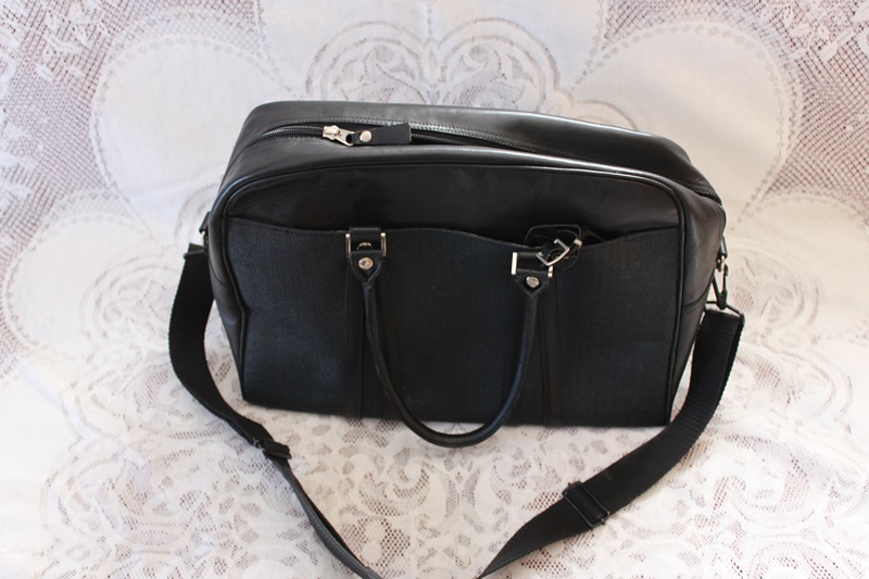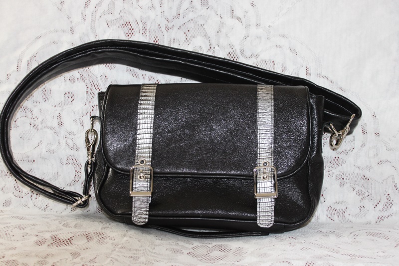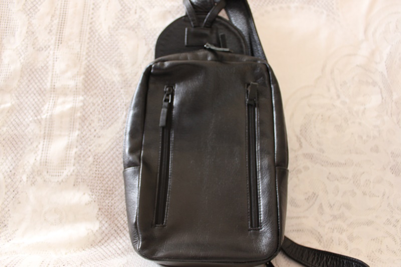 黒色の革製で男女兼用デザインで作成したショルダーバッグ。