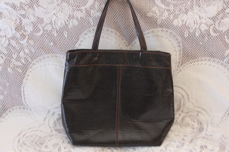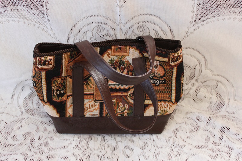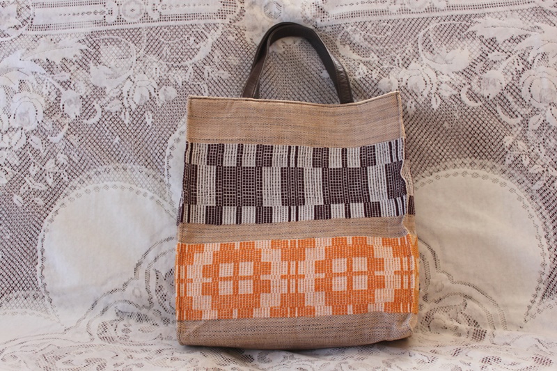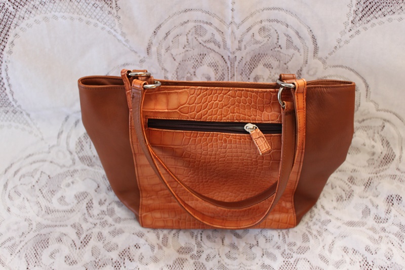 茶色の皮革素材で手提げバッグに作成されてある。