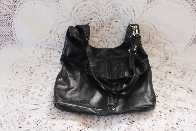 黒色の革製でリックサック的な用途にしたデザインで作成したショルダーバッグ。