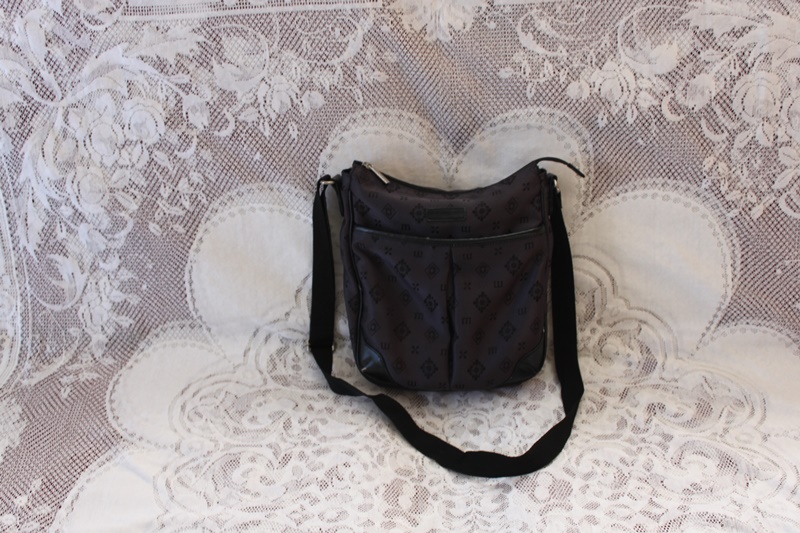 茶色の布製で男女兼用デザインで作成したショルダーバッグ。