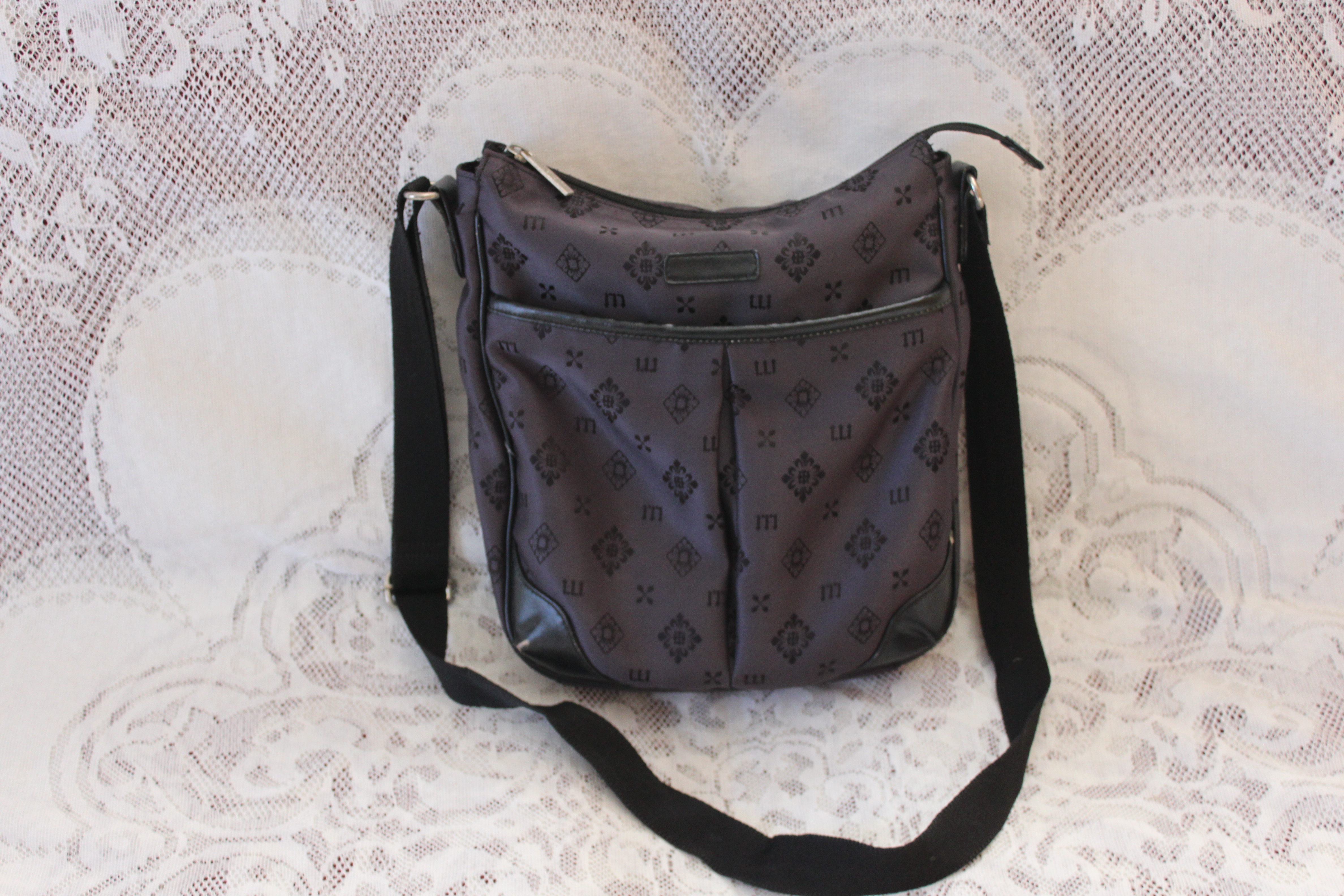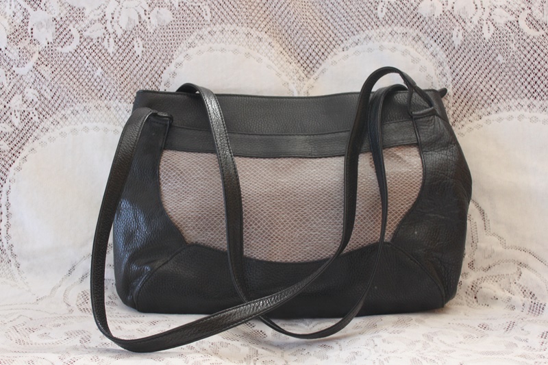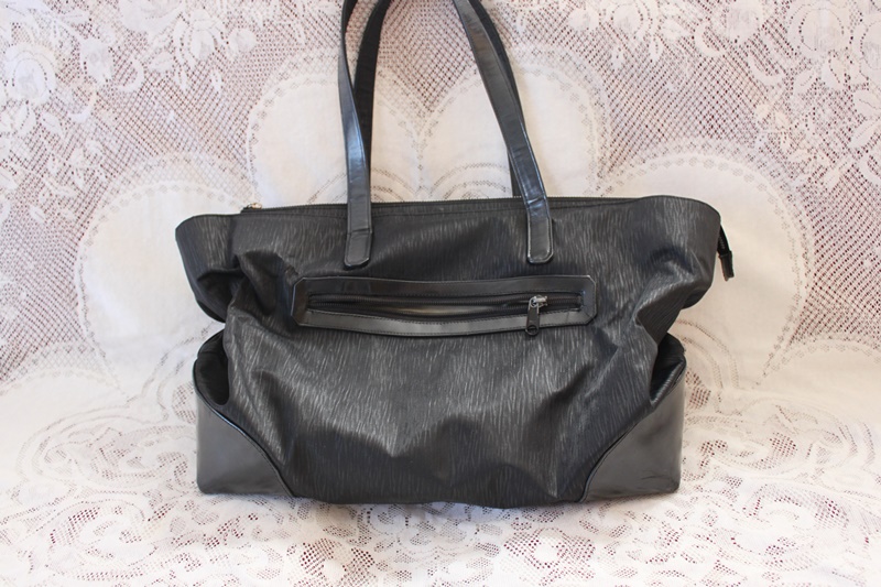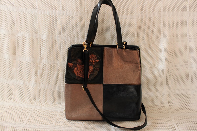 黒色の素材で上部にバラのデザインしてある手提げ&ショルダーバック。