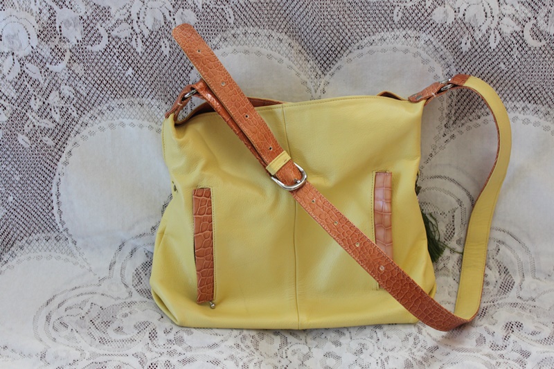 黄色の皮革素材を使っておしゃれな感覚のショルダーバッグ。