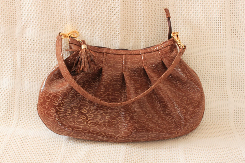 茶色の革若向きデザインで作成したショルダーバッグ。