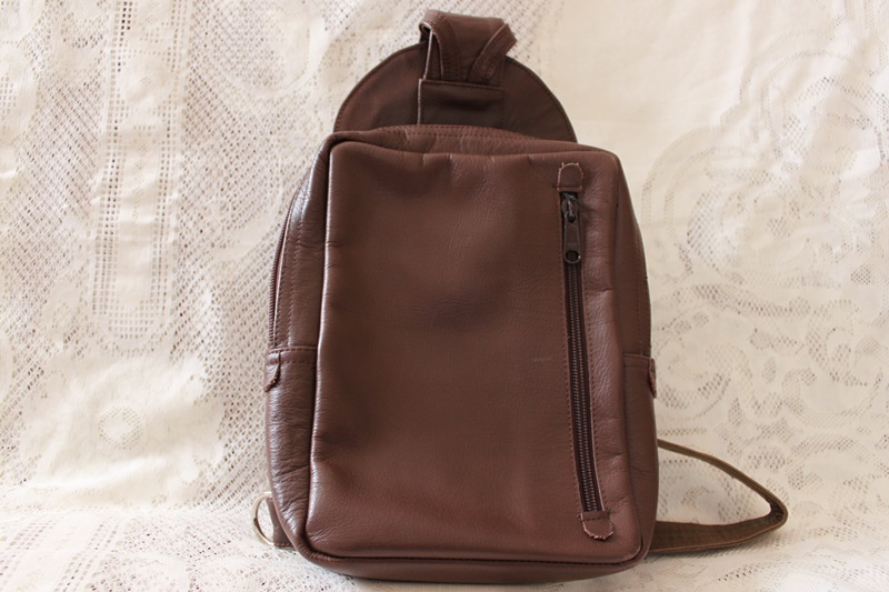 茶色の革製でリックサック的な用途にしたデザインで作成したショルダーバッグ。