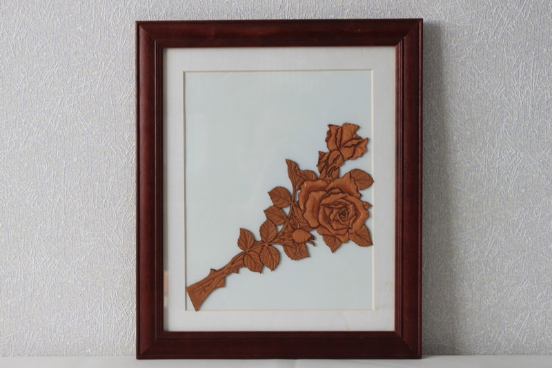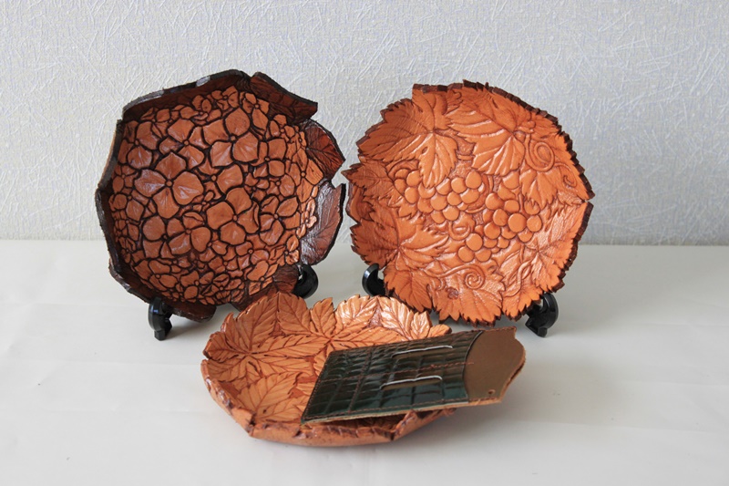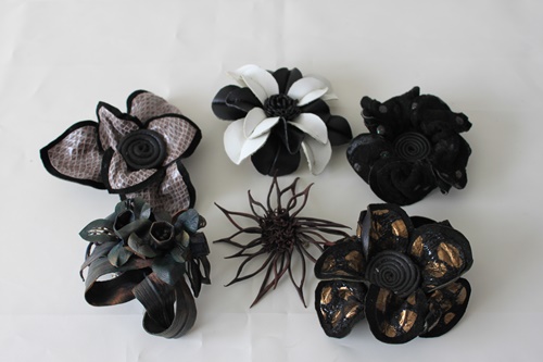 革素材で作成した花デザインの製品