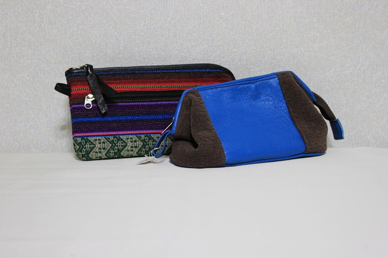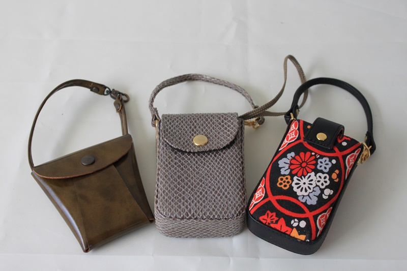 手持ち用ベルトを施した小物入れ。