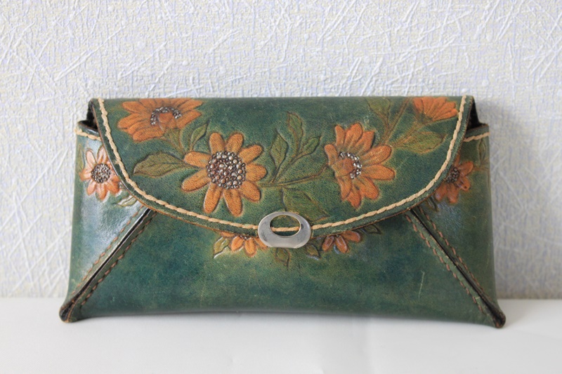 茶色の革素材で花柄のデザインを施したシンプルに仕上げっている。