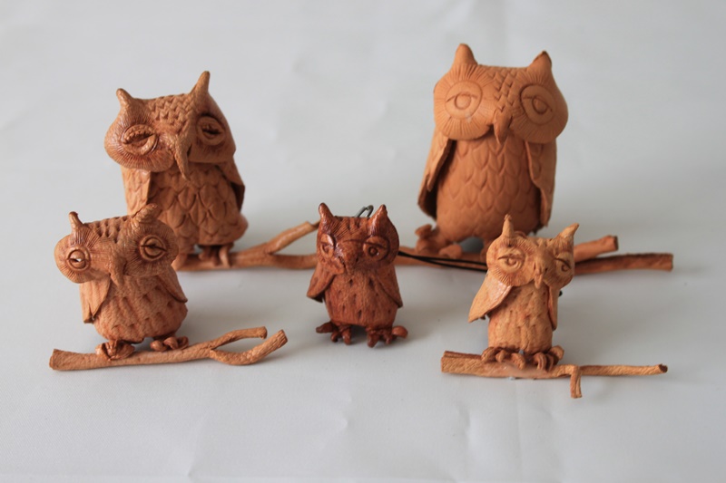革素材で作成した梟の人形
