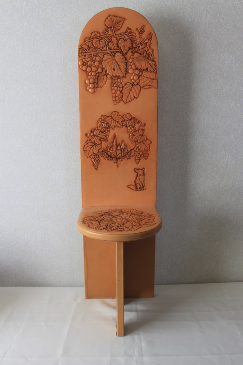 木製の型に革製素材を張り付けて仕上げた製品。