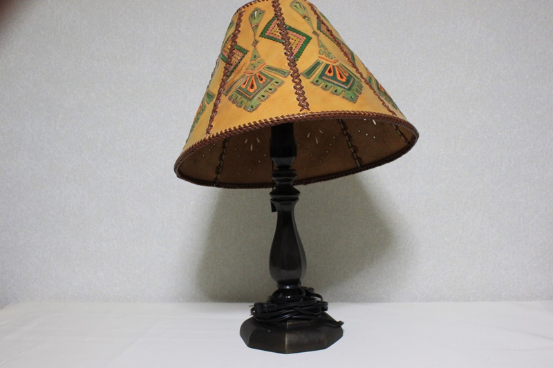 電気スタンドの傘部分を革素材で作成。
